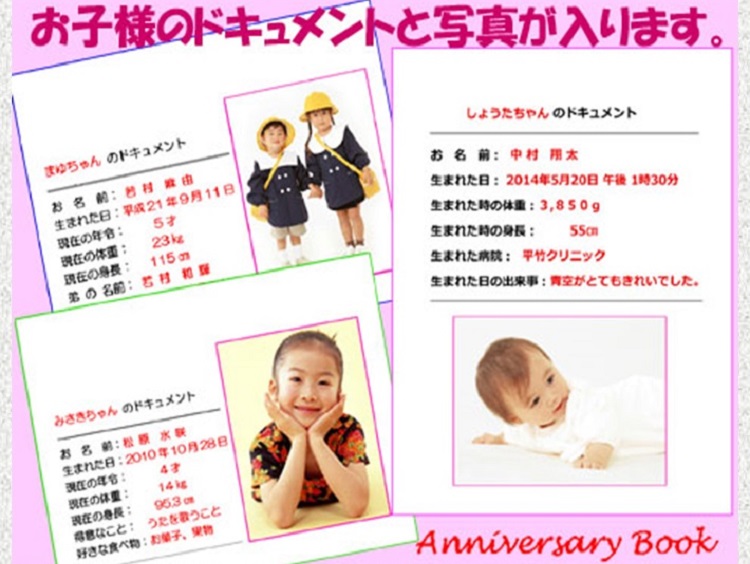 ● お子様の名前や愛称、誕生日、身長、体重等が印刷されます。