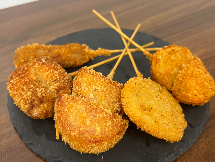 うまい串カツここにあり。カリッと衣で食材の旨味を閉じ込めました。
